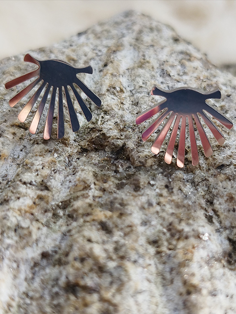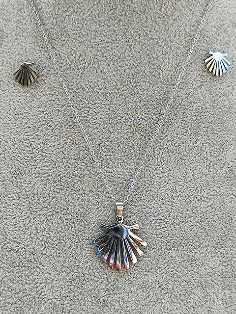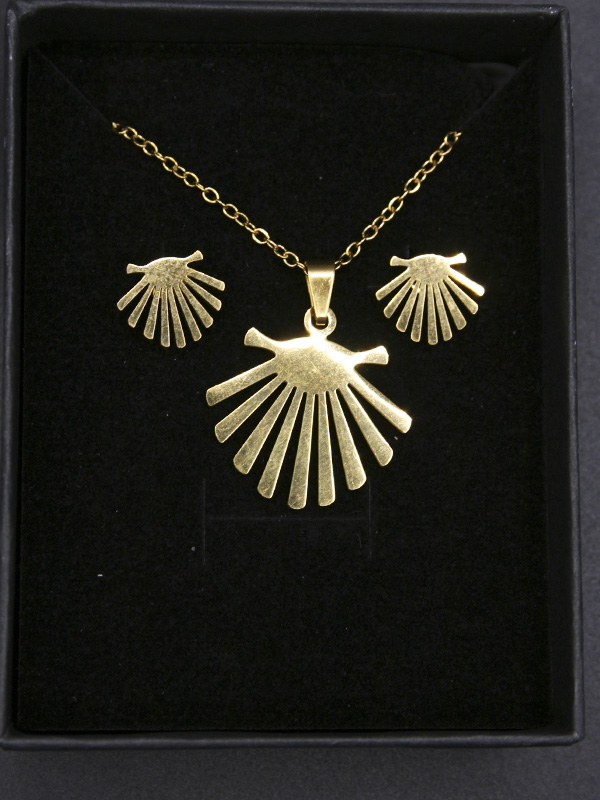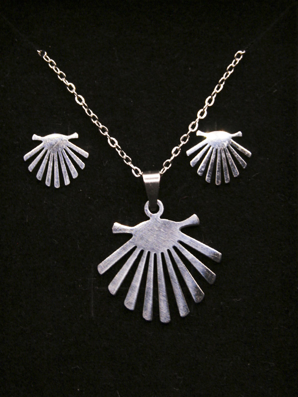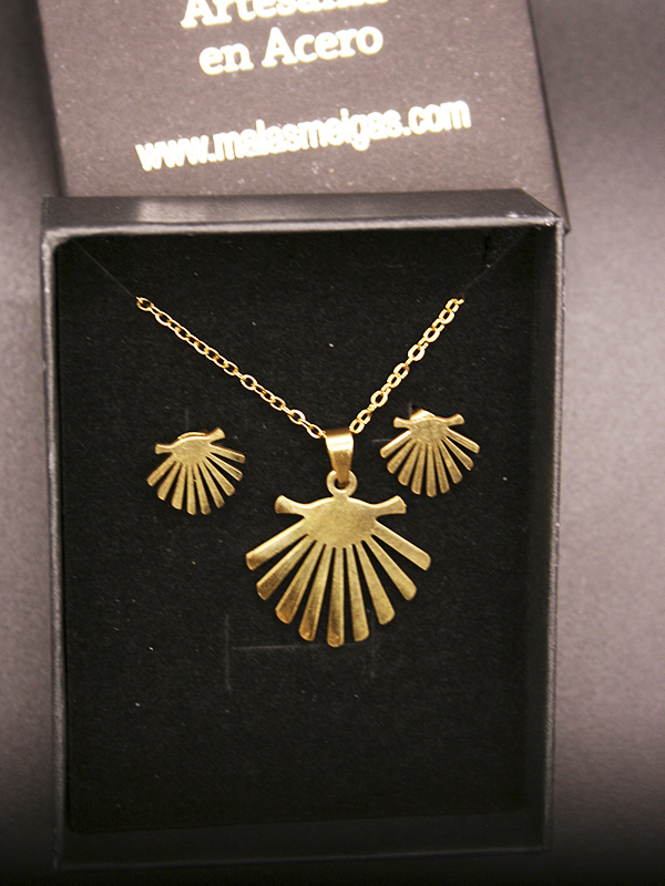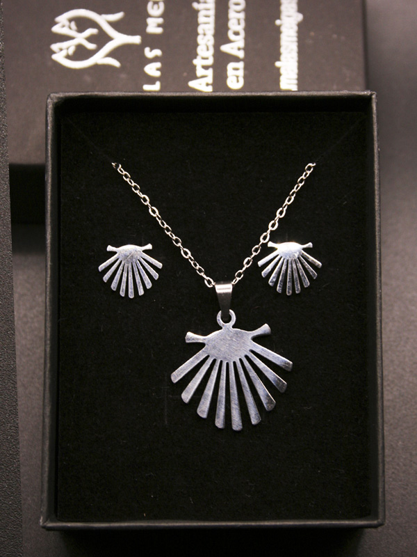 Conjunto de colgante y pendientes de acero inoxidable diseño Concha Camino de Santiago.