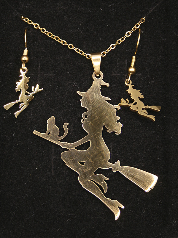 Conjunto de colgante y pendientes de acero inoxidable diseño Meiga da Sorte.