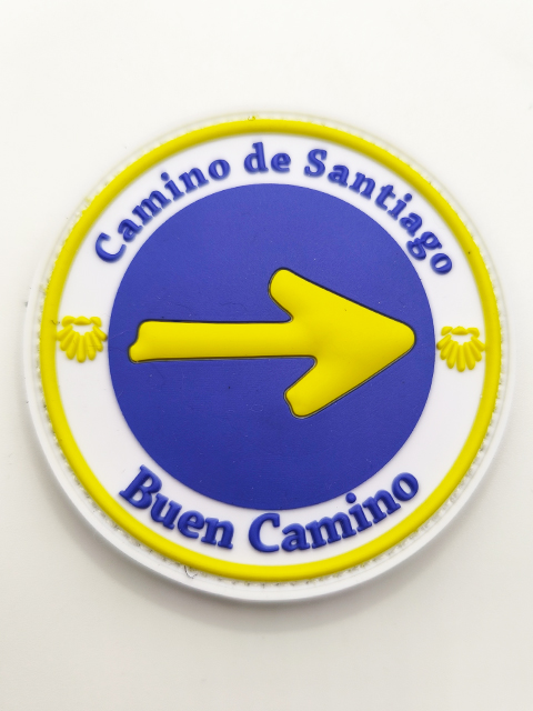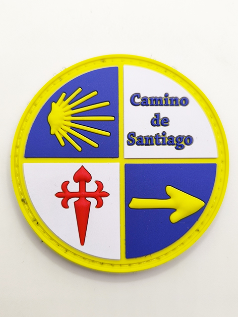Parche PVC Camino de Santiago con Velcro, medidas redondo 7 x 7 cm. rectangular 7 x 5