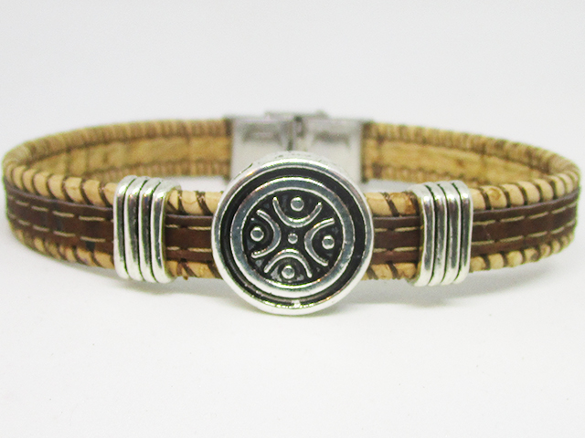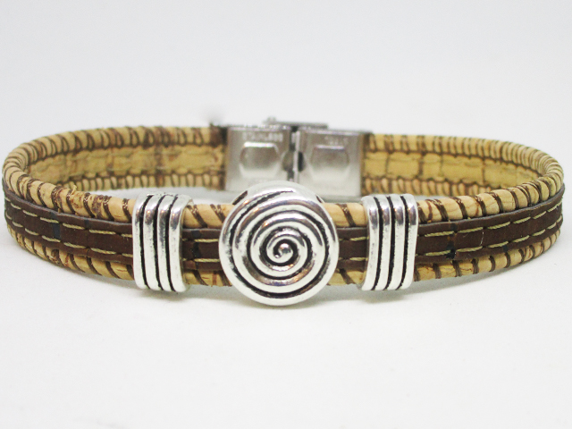 Pulsera realizada con corcho Bicolor natural de 10 mm y 2 separadores en zamak cierre ajustable en acero inoxidable.